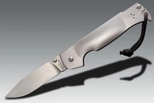Closed: 5.75″; Blade: 4.5″ l Cryo Quenched German 4116 Stainless l Standard Edge l Stonewash Finish; Handle: Stainless; Other Info: Lanyard Hole l Thumb Stud(s) l Pocket Clip. Clip point blade. Ram Safe lock. Hang Packaged.