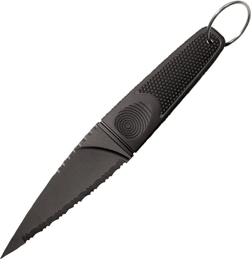 Overall: 7.75″; Blade: 4″ l Grivory l Serrated Edge l Black Finish; Handle: Black l Kraton; Other Info: Lanyard Hole l Full Tang. From the Nightshade Series. UV and heat stabilized, making them impervious to the elements. Deeply checkered handles have been molded directly to the tang. Extremely lightweight. Hang Packaged.