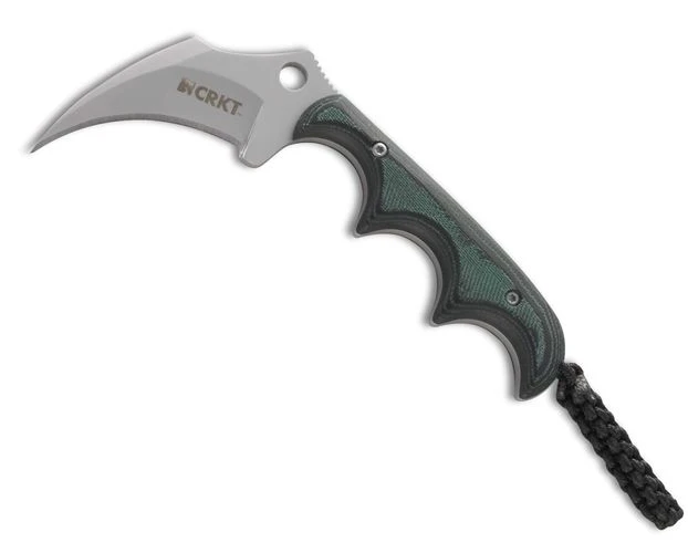 4.75″ overall. 2″ bead blast finish 5Cr15MoV stainless hawkbill blade. Black and Green synthetic handle. Full tang. Lanyard hole. Black GRN neck sheath. Designed by Alan Folts. Boxed.