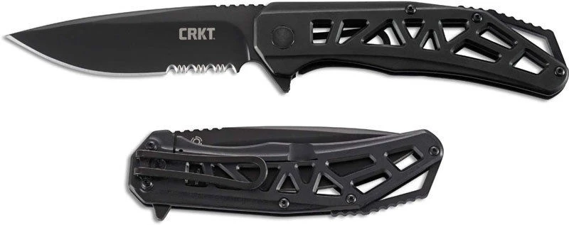 The CRKT Gusset is a reliable everyday carry knife design from Ken Onion with a build inspired by the gussets of a dune buggy frame. This model features a black finished 8Cr13MoV stainless steel blade with a partially serrated cutting edge, paired with a matching stainless steel frame lock handle. One handed operation is no problem thanks to responsive flipper activated deployment and a smooth IKBS ball bearing pivot system.