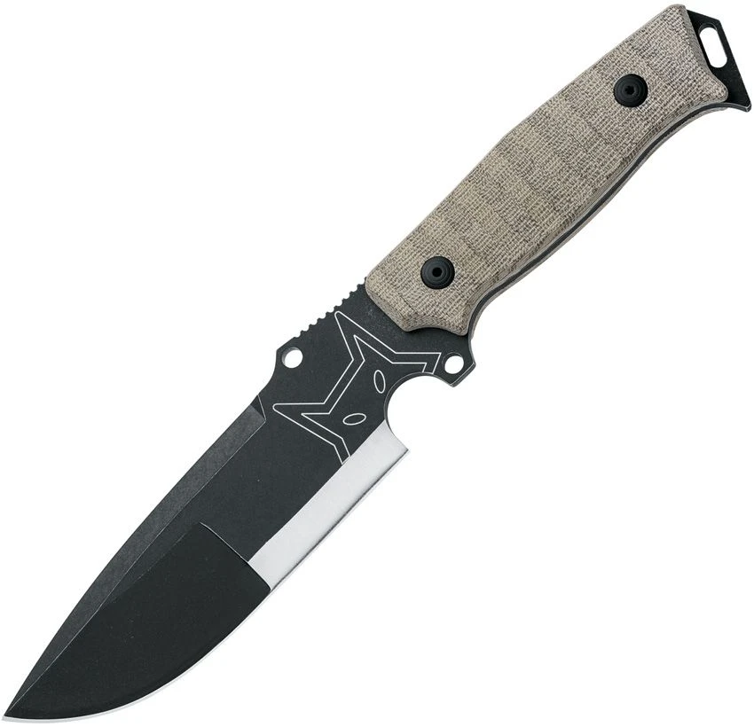 11.25″ (28.58cm) overall. 5.5″ (13.97cm) black PTFE coated D2 tool steel blade. OD green canvas micarta handle. Full, extended tang. Lanyard hole. Black leather belt sheath. Boxed.