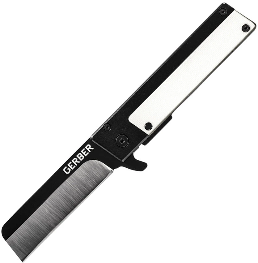 3.75″ closed. 2.75″ 7Cr17MoV stainless sheepsfoot blade. Black stainless handle with white G10 composite inlay. Extended tang. Pocket clip. Boxed.