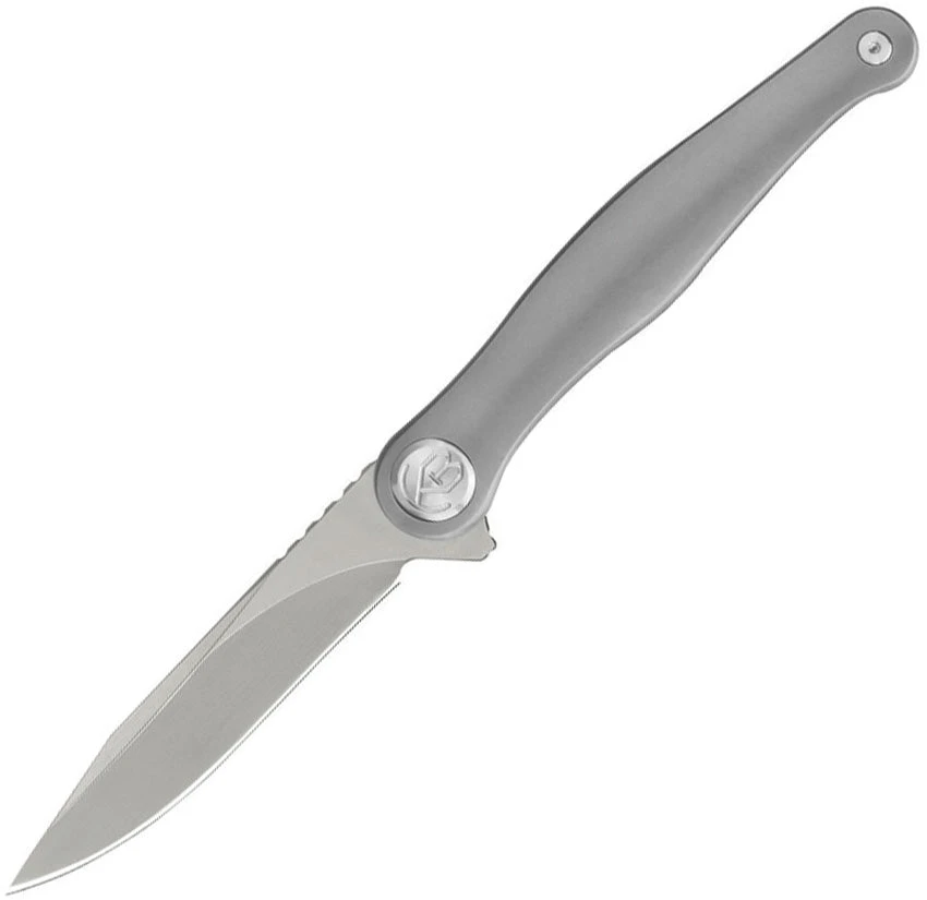 4.13″ (10.49cm) closed. 3.13″ (7.95cm) sand blast finish AUS-10A stainless blade. Gray titanium handle. Extended tang. Pocket clip. Boxed.