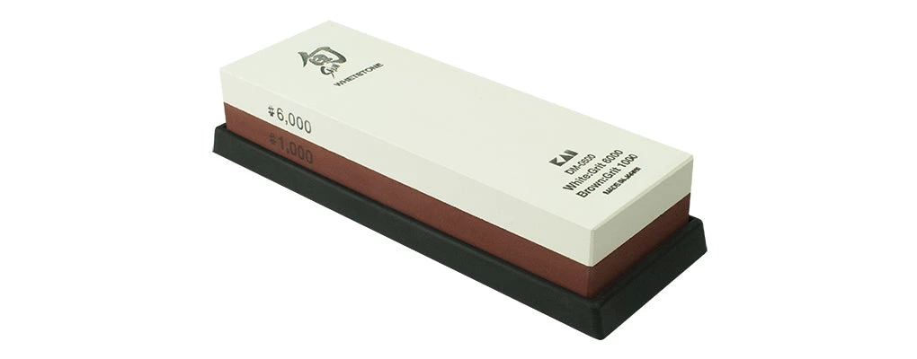 Whetstone has 1000-grit waterstone on one side, 6000-grit waterstone on the other